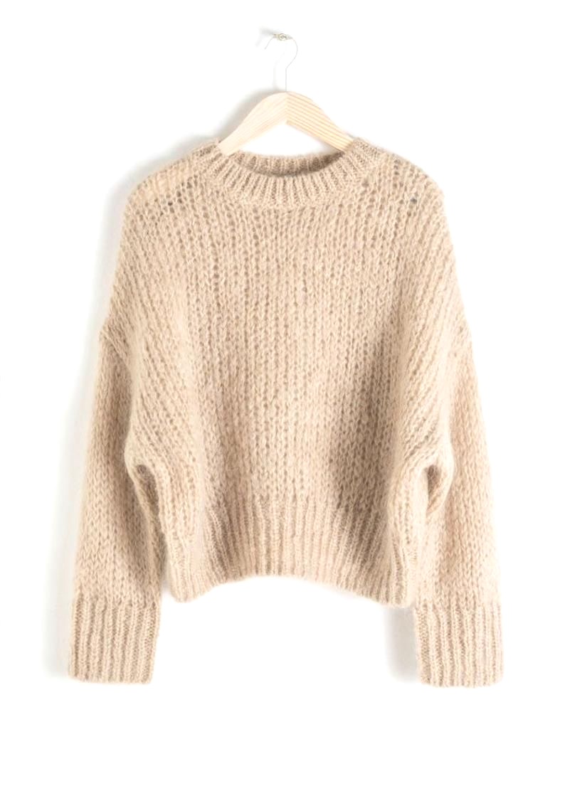 Every person should have at least one sweater that is a classic color. For instance, one could pair this oversized Women's Beige mohair sweater for $153.00 found on Etsy with CITIZENS OF HUMANITY skinny jeans (279,26 €) and Common Project white sneakers ($410) for a casual fun look that was easy to assemble.
