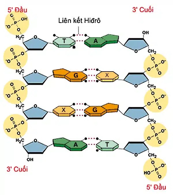 Các bazơ nitơ trên hai mạch ADN liên kết với nhau theo nguyên tắc bổ sung: A luôn liên kết với T bằng hai liên kết hydro, và G luôn liên kết với C bằng ba liên kết hydro. Nguyên tắc bổ sung này đảm bảo tính ổn định và chính xác của thông tin di truyền. Chính sự sắp xếp và liên kết đặc biệt này, một đặc điểm cấu tạo hóa học của ADN, đã tạo nên tính đa dạng và đặc thù của mỗi cá thể.